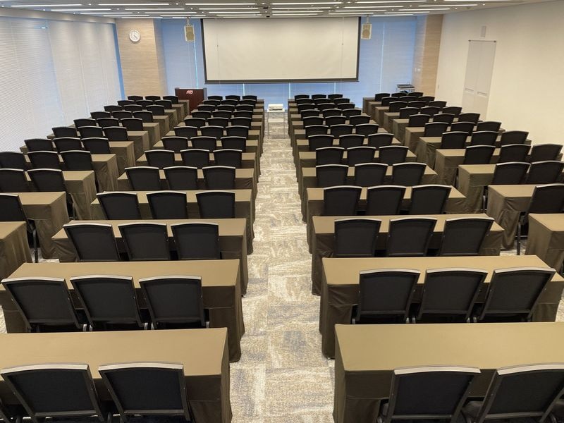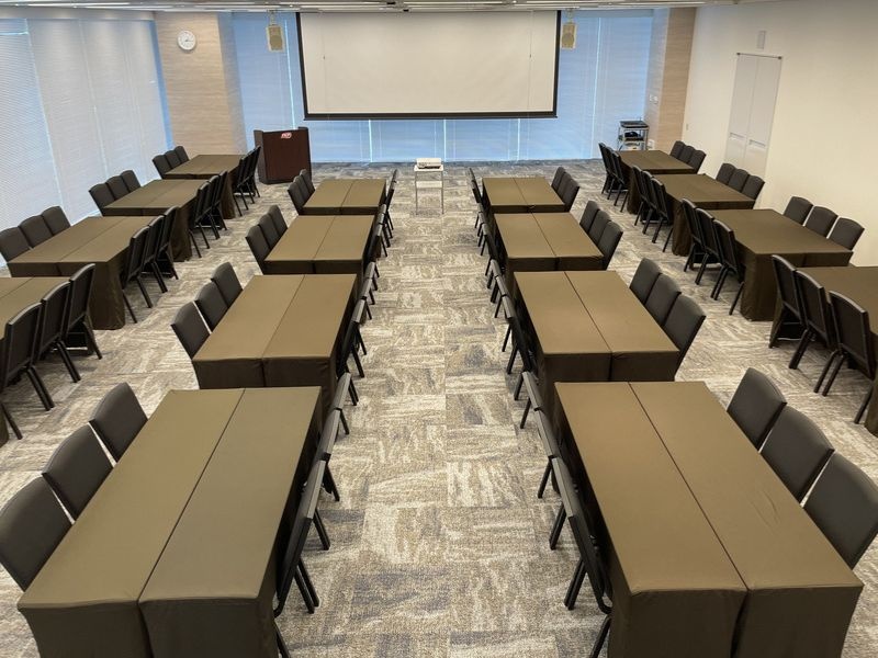 備え付けの天吊り大型スクリーンや音響セットと合わせてセミナー・講演会におすすめです。