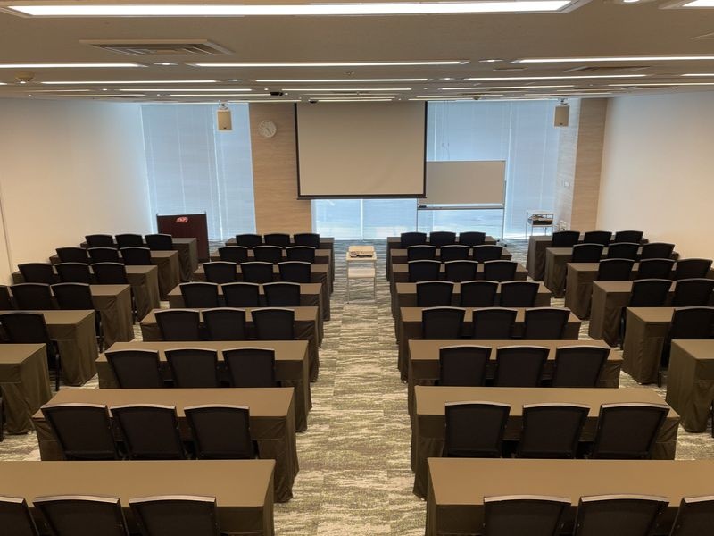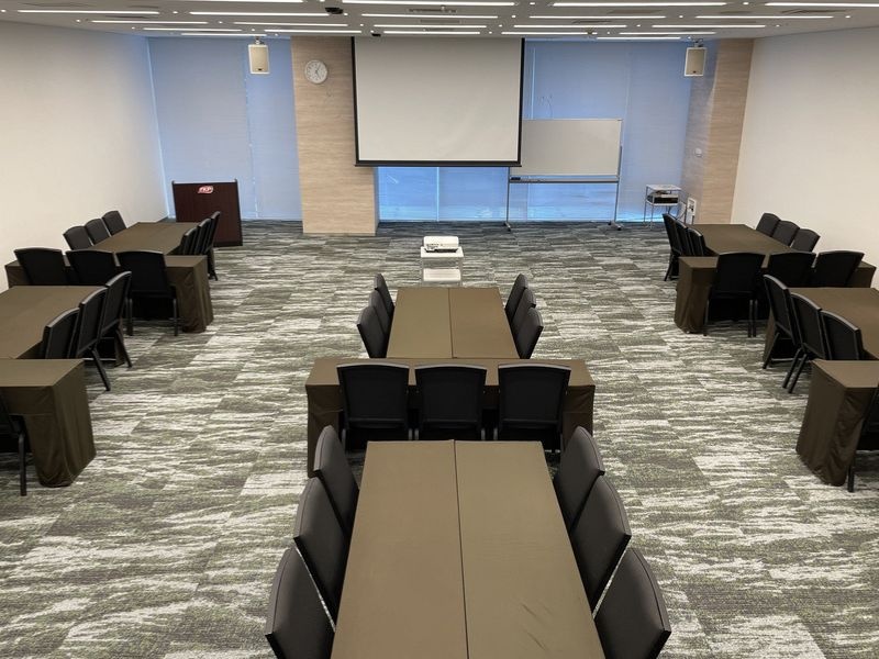 備え付けの天吊り大型スクリーンや音響セットと合わせてセミナー・講演会におすすめです。