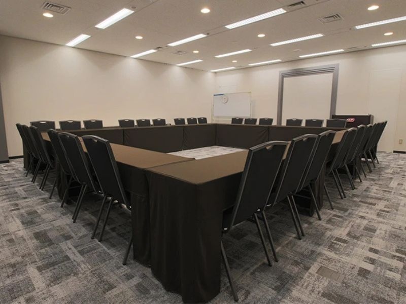 窓がないため、スクリーンで映像を投影する場合に最適な会場です。中規模な会議やディスカッション、説明会や研修会などにおすすめです。