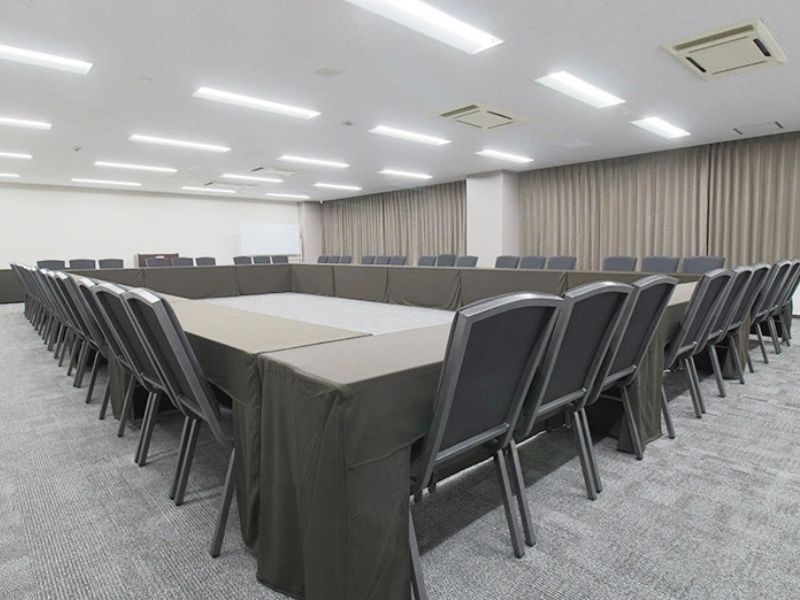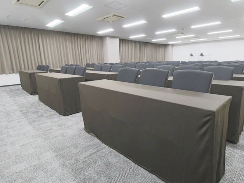 スクール形式で最大105名を収容できる中規模カンファレンスルームです。明るく落ち着いた空間で、セミナーや研修、株主総会などに最適です。