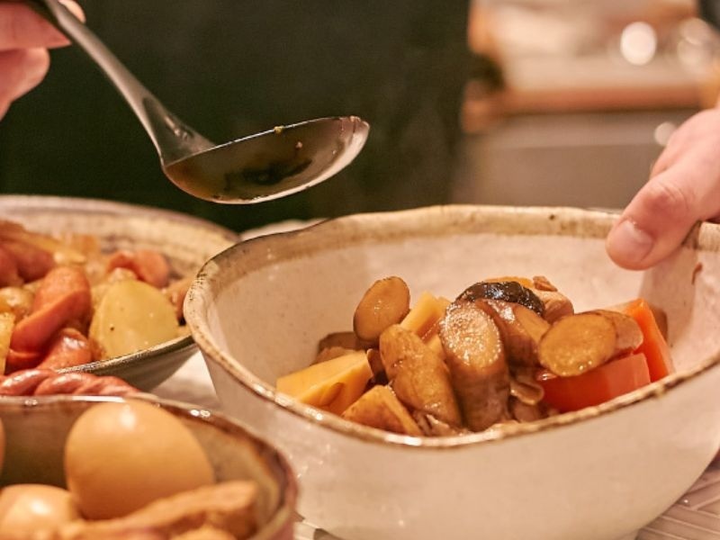 東京駅徒歩2分、丸の内仲通り沿いに位置する好アクセスの居酒屋。昼は蕎麦やカレー、夜は料理人自慢の煮込み料理とおばんざいが楽しめます。半個室(〜6名様)、テーブル席、カウンター席、立ち飲みスペースと多様な席タイプをご用意。毎日23時まで営業。季節の食材を使ったお料理で仲間と乾杯!