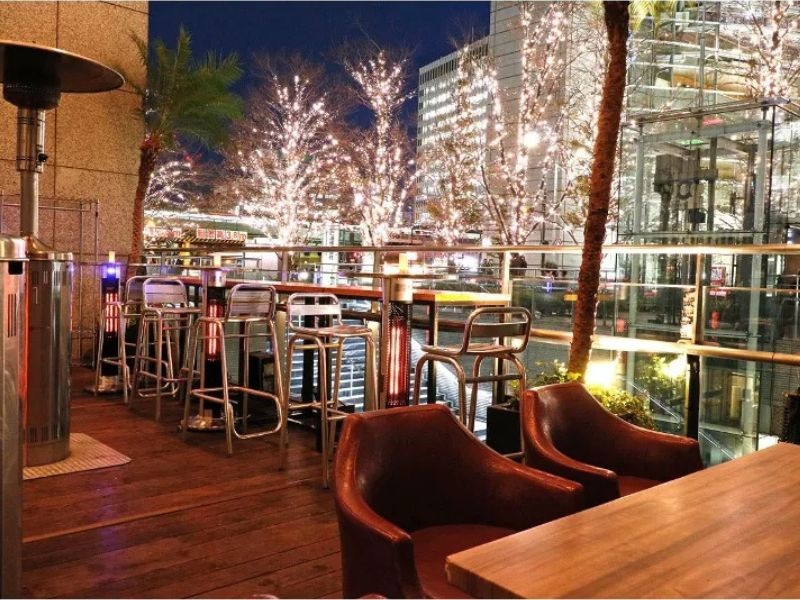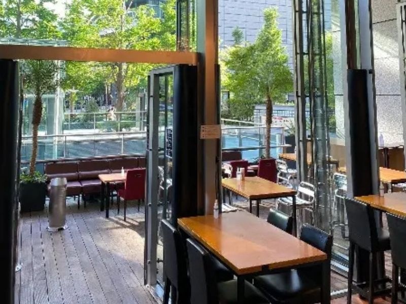 【東京駅2分★TOKIAビル1階】オープエアが心地良いテラスは丸の内一の心地よさ。ウッド調の落ち着いた店内にはシャンデリアが彩り、丸ノ内らしい大人でハイセンスな空間。DJブースがあり、上質な音と共に美味しい食事が堪能できる。