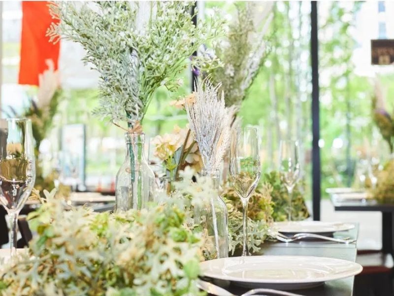 ガラス張りの店内には、昼は太陽の光が降り注ぎ、夜は爽やかな風が吹き抜けます。60名様着席可能ながら、30名様程から貸切可能なのも嬉しいポイント。
