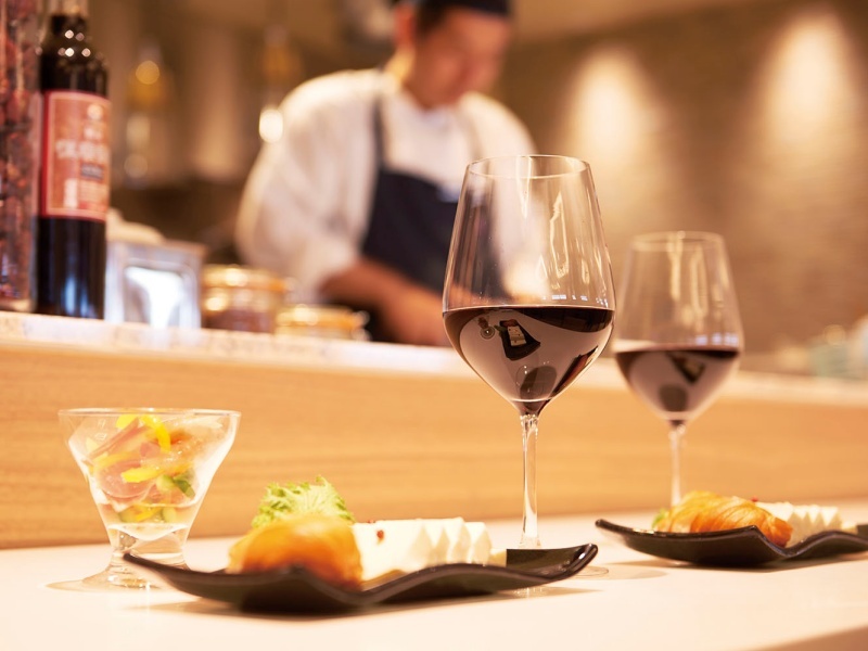 30種類以上のワインの中から、プロが各料理に合わせて選定したペアリングワインをご用意しております。