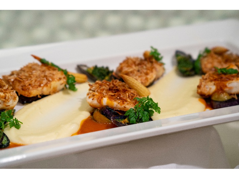 「美食のホテルリバージュアケボノ」でゲストを魅了。 県外一流ホテルで料理長を歴任したシェフによる、目にも鮮やかなフレンチや大皿料理コースが最大のアピールポイント。オプションの「ローストビーフ・カッティングサービス」や「寿司盛」を加えれば、イベントの満足度が飛躍的に高まります。