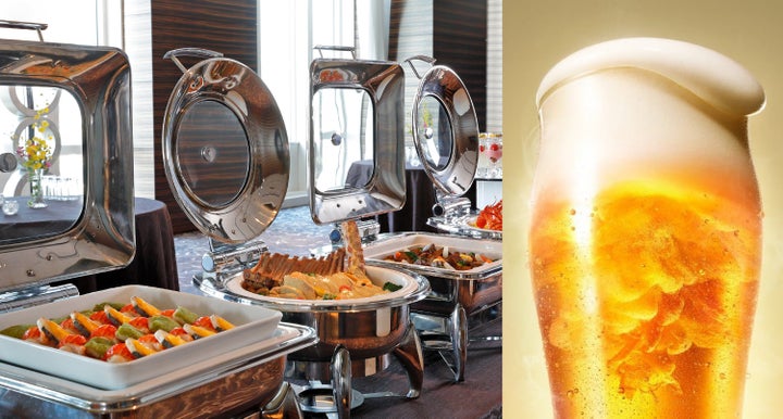 この夏、シェラトン都ホテルではビールにぴったりの料理をブッフェ形式で提供いたします。メニューにはカツオのグリル シノワソースや牛タンのつくね 山椒風味など、夏にぴったりな料理が並びます。ドリンクはサントリー生ビール 瓶、ハイボール、ワインなどをフリーフローでお楽しみいただけます。