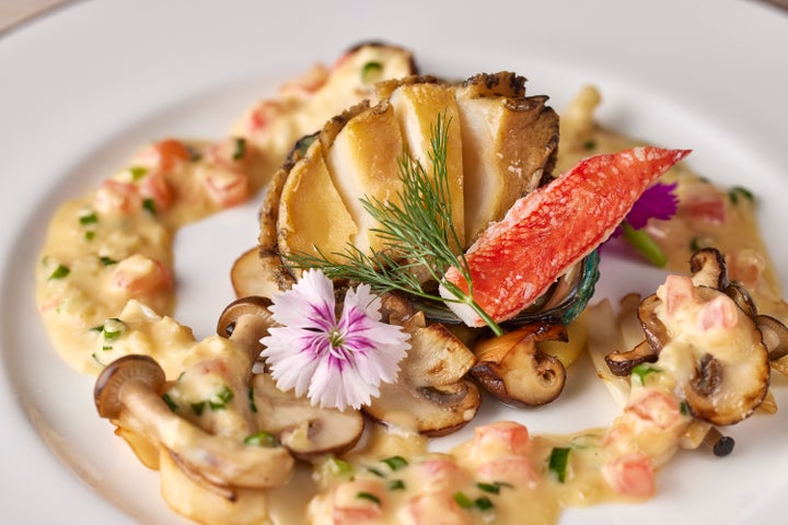このブッフェでは、目の前で料理を仕上げるパフォーマンスキッチンから、シェフおすすめの4品が登場。きのこの香りが広がる出汁醤油ソースを添えた「ローストビーフ」、白ワインで蒸し上げたアワビとトゲズワイガニを贅沢に組み合わせた「秋野菜とアワビとトゲズワイガニのデュグレレソース」、梨の甘さが引き立てる「千葉県産豚肉のグリル 梨のピュレとロベールソース」、そしてパティシエ特製の「しぼりたてモンブラン」を、オーダーごとにお作りします。