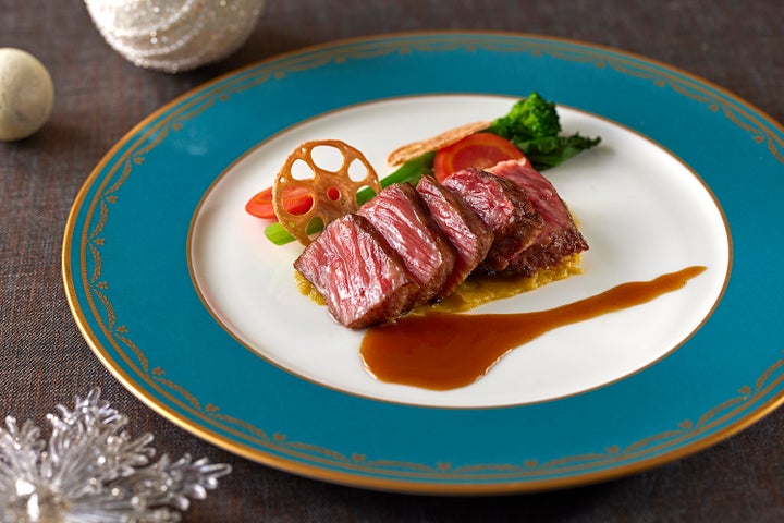 <メニュー> お好みのメインディッシュより1品 ・国産牛のブッフ・ブルギニョン 季節の野菜添え ・黒毛和牛の昆布締めステーキ 柚子胡椒ソース ・チーズフォンデュハンバーグステーキ デミグラスソース ・金目鯛のブイヤベース ガーリックトースト添え ・アワビと天使の海老のデュグレレソース ・クリビヤックサーモン ショロンソース添え ブッフェメニュー一例 ・オニオングラタンスープ ・トマトとモッツァレラチーズのカプレーゼ クリスマスバージョン ・ポテトサラダツリー ・クリスマスリースバーニャ ・キッシュロレーヌ ・鴨胸肉のローストオレンジソース ・フランクフルターブルスト(生ソーセージ)プレーン・ハーブ 粒マスタード添え ・ブッシュ・ド・ノエル ・シュトーレン ・ドームショコラブランケーキ など約40種類 ※仕入れ状況によりメニューが変更となる場合があります。 |
