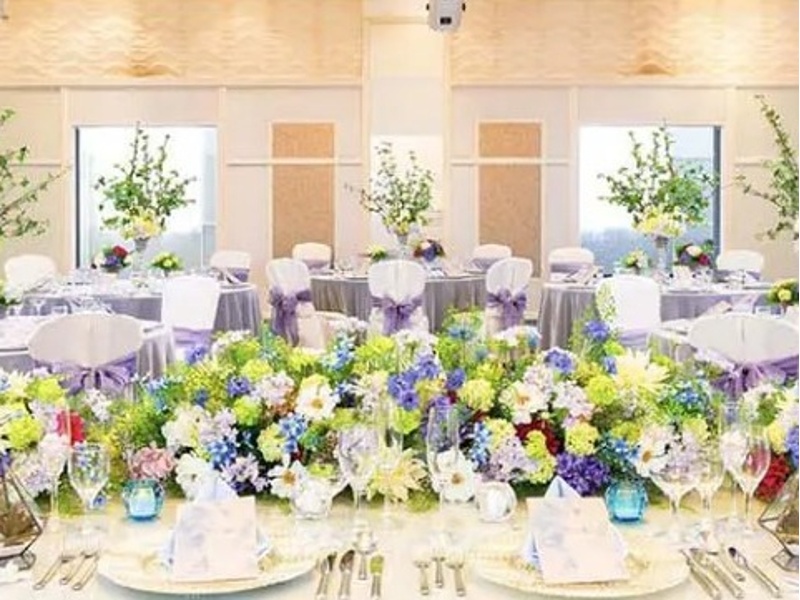 「Banquet Stella」は、ラテン語で「星」を意味する名の通り、会場を象徴するシャンデリアの輝きが印象的なフロア貸切バンケットです。白を基調とした清潔感あふれる大空間は、どんなテーマやコーディネートも美しく引き立てます。専用ホワイエも貸切で利用できるため、ゲストを迎えるウェルカムパーティ、華やかなデザートビュッフェ、そしてオリジナリティあふれるウェルカムスペースなど、アイデア次第で使い方は無限大。さらに、会場内を半分に分割できる柔軟性も持ち合わせており、ゲストの人数に合わせて最適な広さでお使いいただけます。