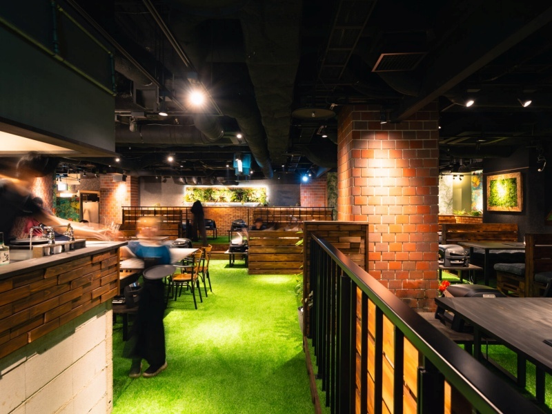 名古屋の栄駅から徒歩30秒という抜群のアクセスを誇る「ウッドデザインパーク栄」は、非日常感あふれる室内BBQ体験を提供するユニークな会場です。黒や茶色を基調とした落ち着いた大人の雰囲気と、木材の温かみが融合した空間は、特別なパーティーを演出します。壁のない大空間は最大120名様まで貸切可能で、着席80名、立食100名まで対応。主役が映えるステージ席はどこからでも見渡せ、一体感のあるイベントが実現します。ソファ席も豊富で、長時間の利用も快適。自社特製のハンドメイド照明やジャングルを思わせる装飾が、参加者を非日常へと誘います。企業様の懇親会、結婚式の二次会、新忘年会など、幅広い用途で利用実績があり、幹事様の早入り準備、景品の事前預かり、マイク・プロジェクターの無料貸し出しなど、きめ細やかなサポートも魅力。下見や打ち合わせも可能で、安心して当日を迎えられます。普段とは一味違う、記憶に残るイベント開催に最適な空間です。