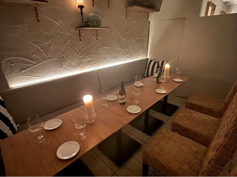 店内には2名様個室から6名様半個室まで完備されており、じっくり語り合いたいデートや友人との語らいにぴったり。30名様以上での貸切も可能で、最大70名様までの立食パーティーに対応。広々とした空間で、窓から光が差し込む開放的な雰囲気の中、心地よい時間をお過ごしいただけます。