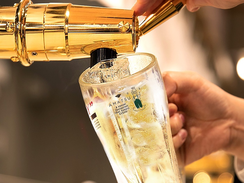 最大の特徴は、各テーブルに設置したセルフハイボールタワー!!
