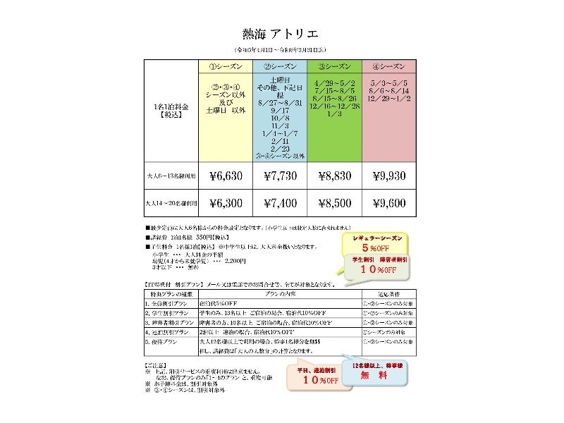 その他、学生割引あり