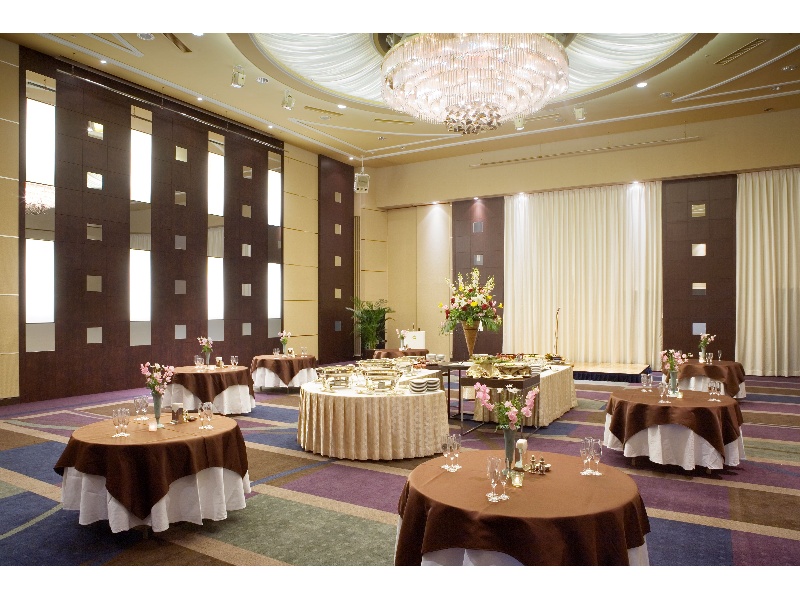 華やかなシャンデリアが印象的な「桃山」。天井高の開放感と、上品な内装が特別なひとときを演出。立食スタイルにも対応し、優雅な空間で心に残るひとときをお過ごしください。