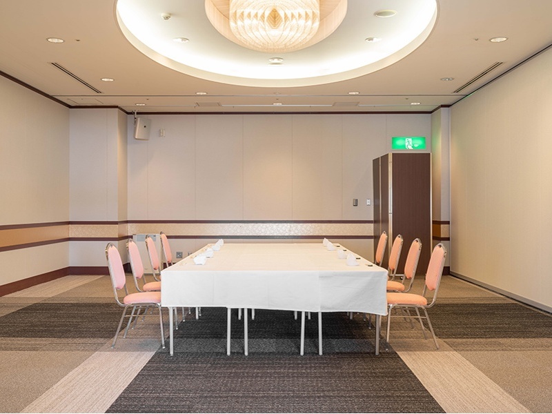 アートホテル弘前シティの3Fに位置する「アメジスト」は、中規模の宴会や会議に最適な空間です。連結して広々とした空間として利用できるため、多人数でのイベント開催にも柔軟に対応します。落ち着いた雰囲気の中で、ビジネスミーティングから懇親会、式典など幅広い用途でご利用いただけます。機能性と快適性を兼ね備えた「アメジスト」で、思い出に残る特別な時間をお過ごしください。
