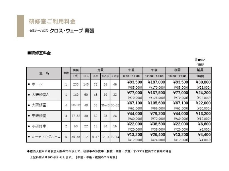 全てを館内でご利用された時に限り宿泊割引料金(公式サイト掲載料金より30%OFF)にてご提供させていただきます【午前・午後・夜間のコマ対象】