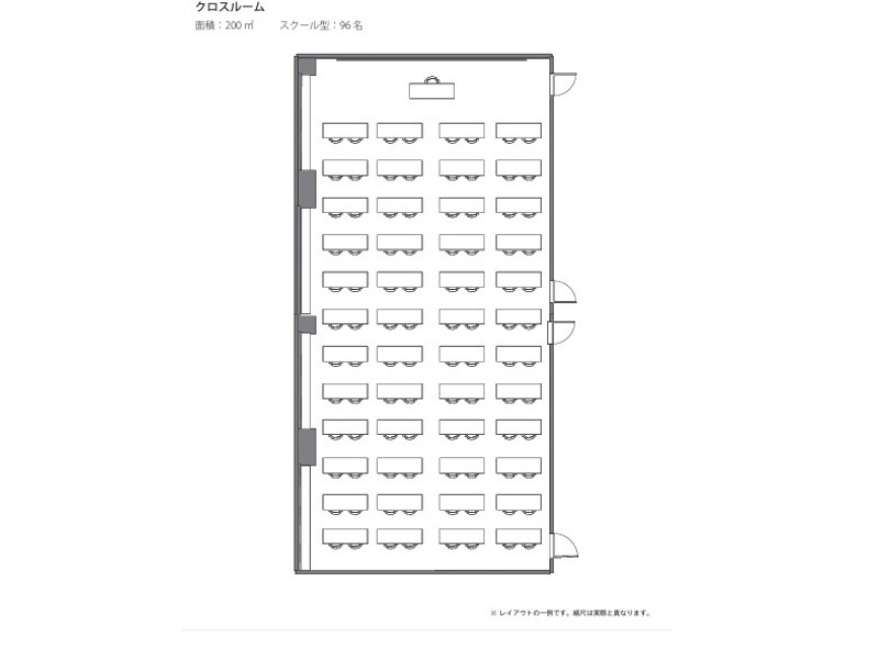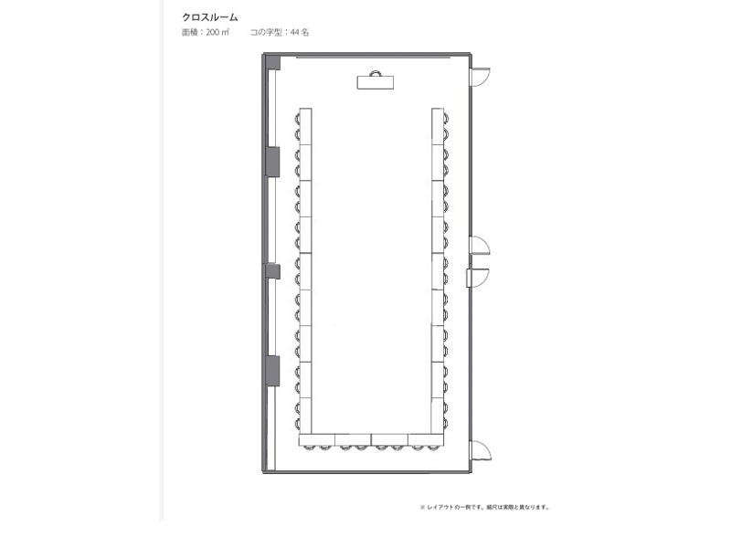 | 立食 | 着席 | スクール | シアター | 口の字 | コの字 | 島型 | 対面 | 面積(m²) | 天井高(m) | |