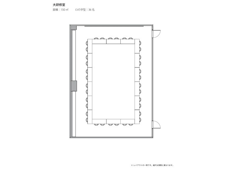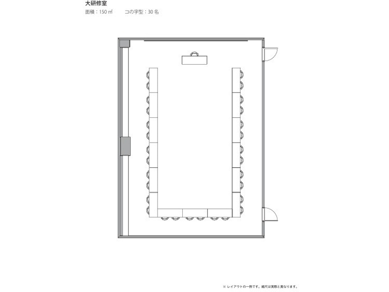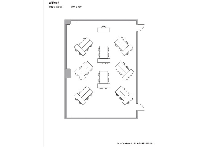 | 立食 | 着席 | スクール | シアター | 口の字 | コの字 | 島型 | 対面 | 面積(m²) | 天井高(m) | |