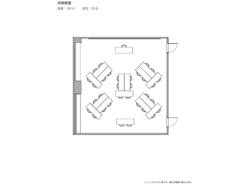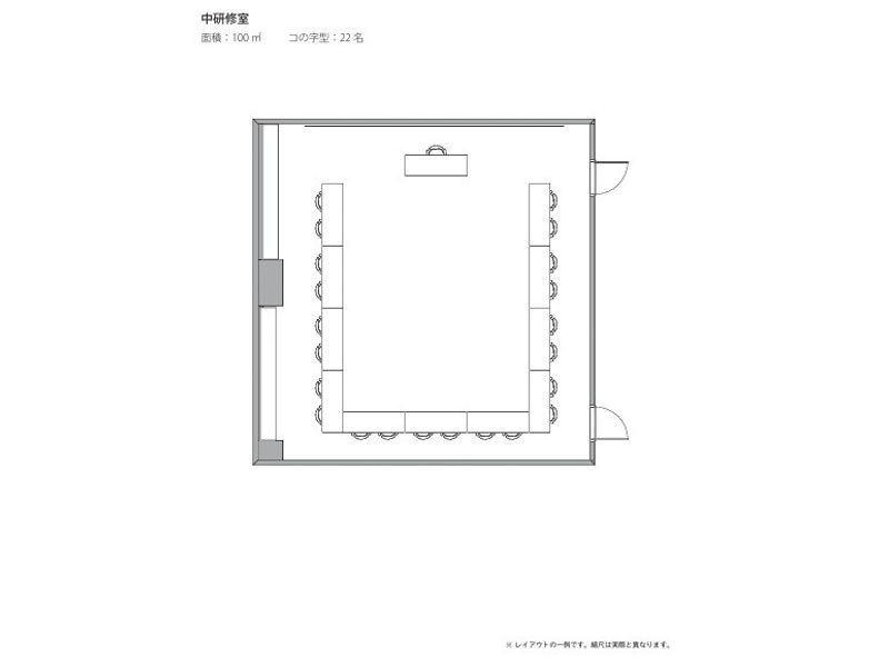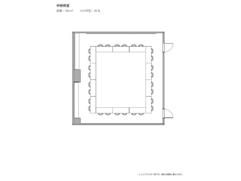 | 立食 | 着席 | スクール | シアター | 口の字 | コの字 | 島型 | 対面 | 面積(m²) | 天井高(m) | |